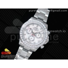 • JH공장 데이토나 자개다이얼 브레이슬릿 Daytona SS White Dial Diamonds Bezel on SS Bracelet A4130