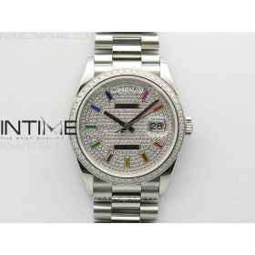 RA공장 롤렉스 데이데이트 36 다이아몬드다이얼 다이아몬드베젤 프레지던트브레이슬릿 Daydate 128238 36mm Crystals Bezel SS RAF Best Edition Color Diamonds Dial on SS President Bracelet A2836
