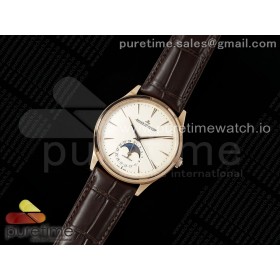 APS공장 예거르쿨트르 마스터 울트라씬 문페이즈 로즈골드금통 화이트다이얼 브라운가죽스트랩 Master Ultra Thin Moon RG APSF 1:1 Best Edition White Dial on Brown Leather Strap SA925 Super Clone