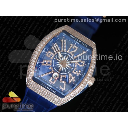 OX공장 프랭크뮬러 뱅가드 V45 로즈골드금장 풀다이아케이스 블루다이얼 블루거미스트랩 Vanguard V45 RG Full Diamonds Blue Textured Dial Diamonds Markers on Blue Gummy Strap A2824